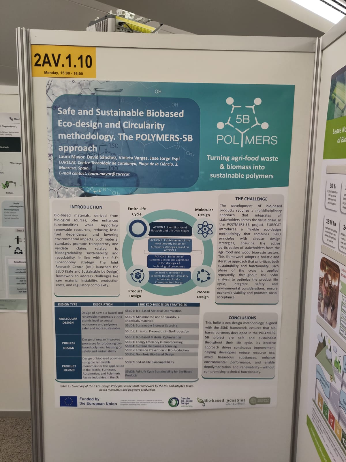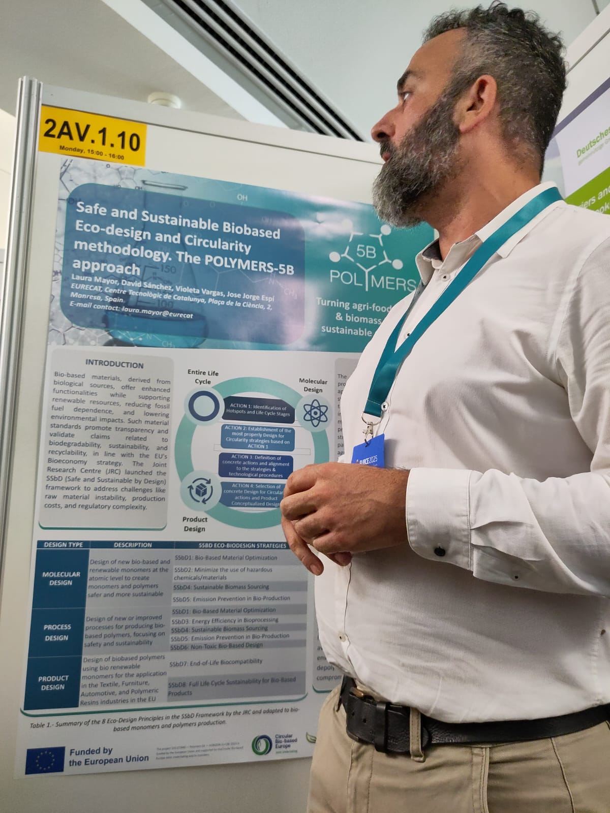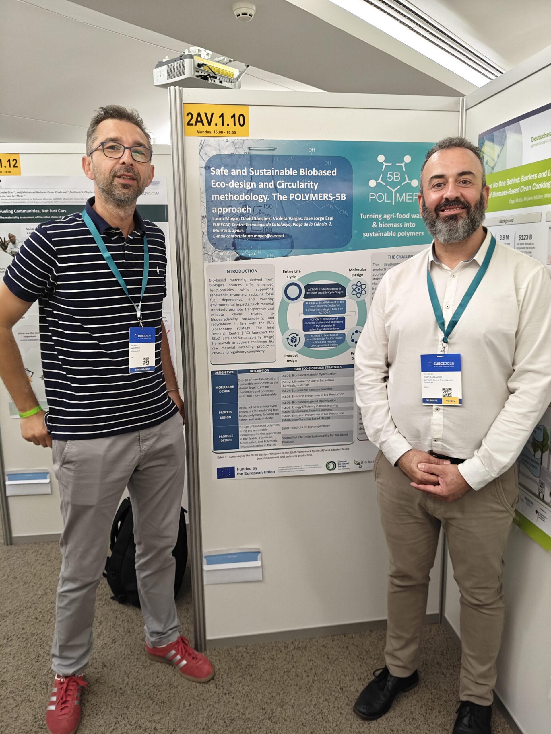 On June 9th, Jose Jorge Espí Gallart from EURECAT presented a poster on behalf of the POLYMERS-5B project, titled: Safe and Sustainable Biobased Eco-design and Circularity Methodology: The POLYMERS-5B Approach.