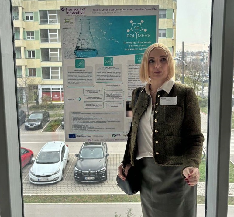 On 2 December 2025, Branka Pilic from the Faculty of Technology Novi Sad, University of Novi Sad, represented the POLYMERS-5B project at the Horizons of Innovation Forum 2025, held at the Novi Sad Science & Technology Park. The forum gathered 324 participants from 22 countries, including researchers, innovators, institutional representatives, companies, investment funds, and international networks.